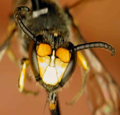A male Hylaeus basalis - aka the cinquefoil masked bee - has fascinating antennea