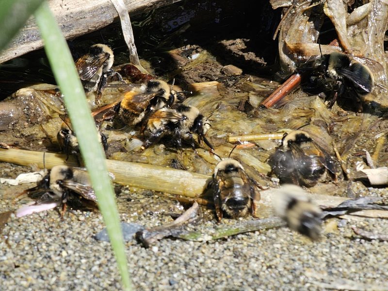 Lots of female Anthophora bomboides (aka bumble bee like digger bees) at a watering spot at Fort Flagler State Park. Check out a video of hundreds of these bees getting water.