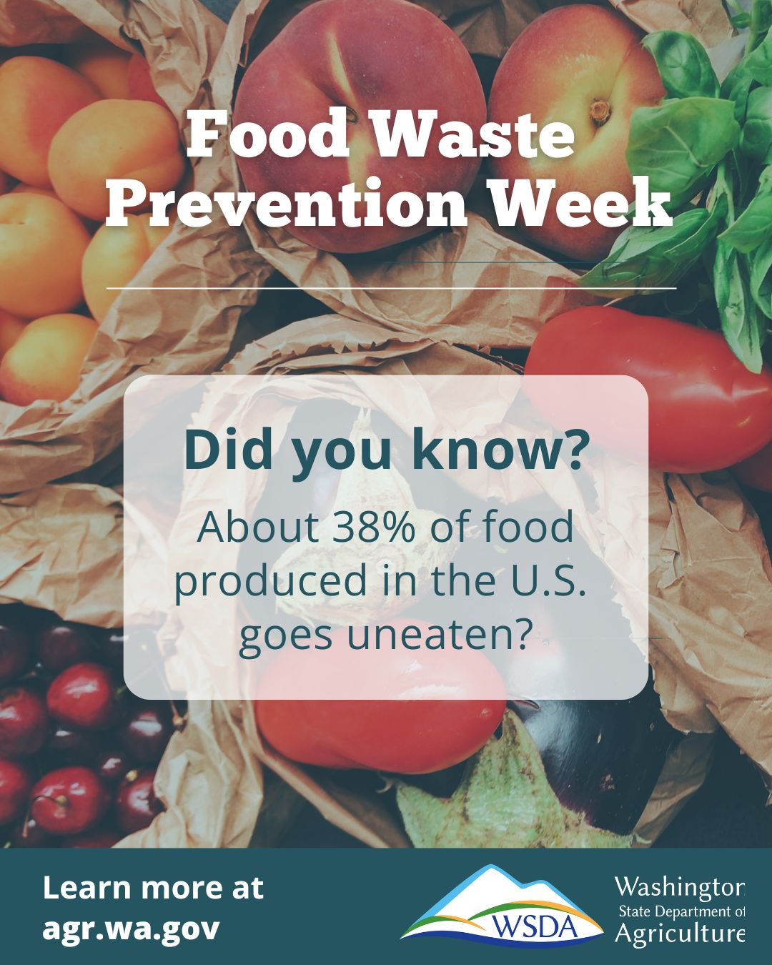 Every year, millions of pounds of perfectly good food go to waste in the United States. In fact, Americans lose an average of over $218 billion each year as a result of food being wasted. But food waste doesn’t just affect our wallets, it can also have significant environmental and social consequences. That’s why the Washington State Department of Agriculture is a proud partner of Food Waste Prevention Week, taking place April 7–13, 2025. Since 2020, this annual initiative has gathered more than 600 organizations each year to raise awareness and inspire action to reduce food waste at home, work, and in our communities.