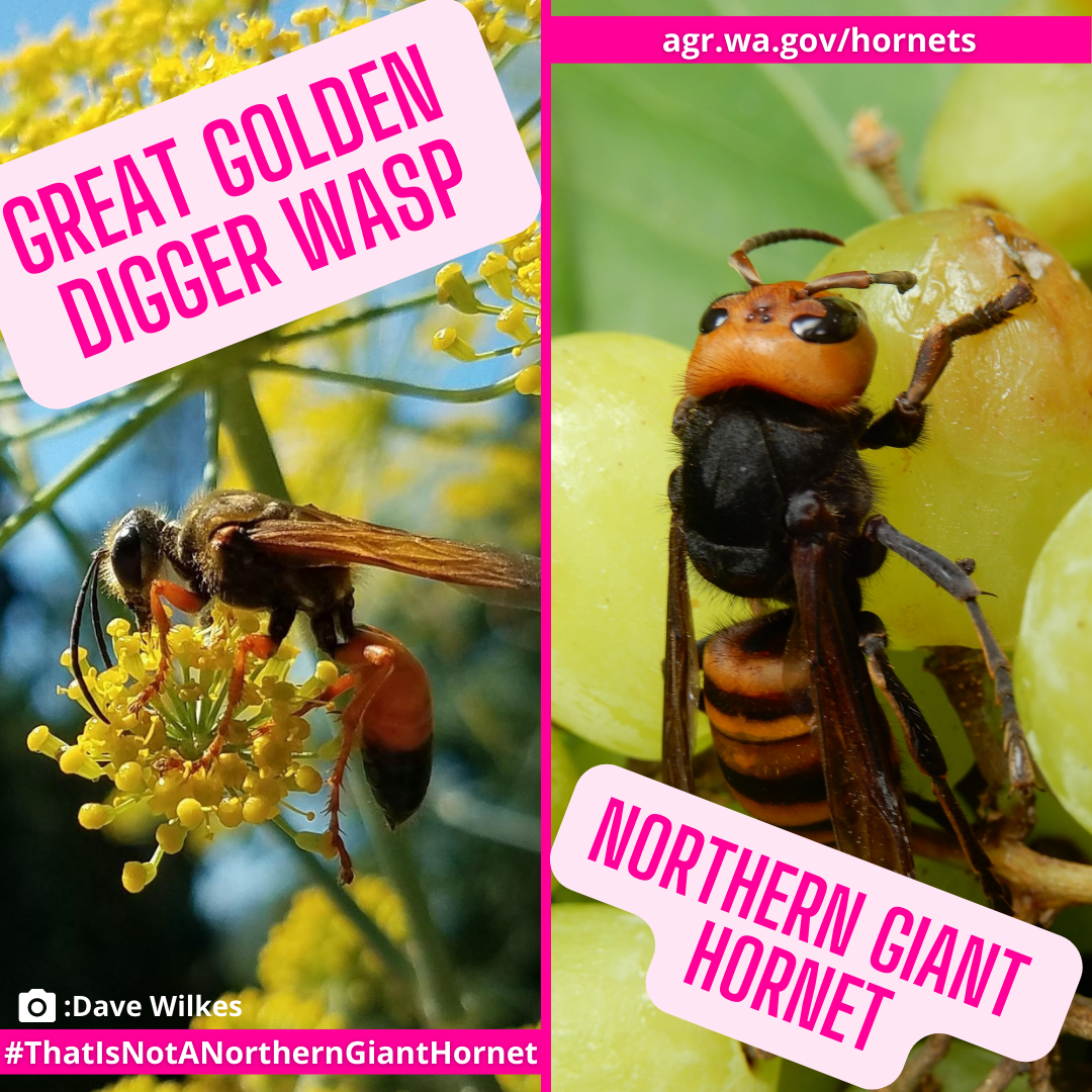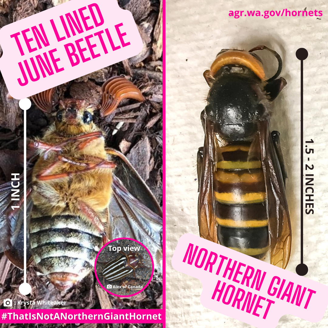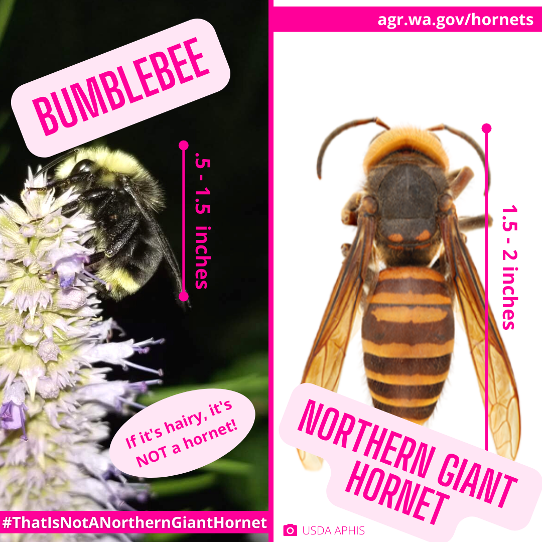 #ThatIsNotANorthernGiantHornet is an educational campaign to help residents identify northern giant hornets by comparing them to insects that have frequently been reported as suspected hornets.
