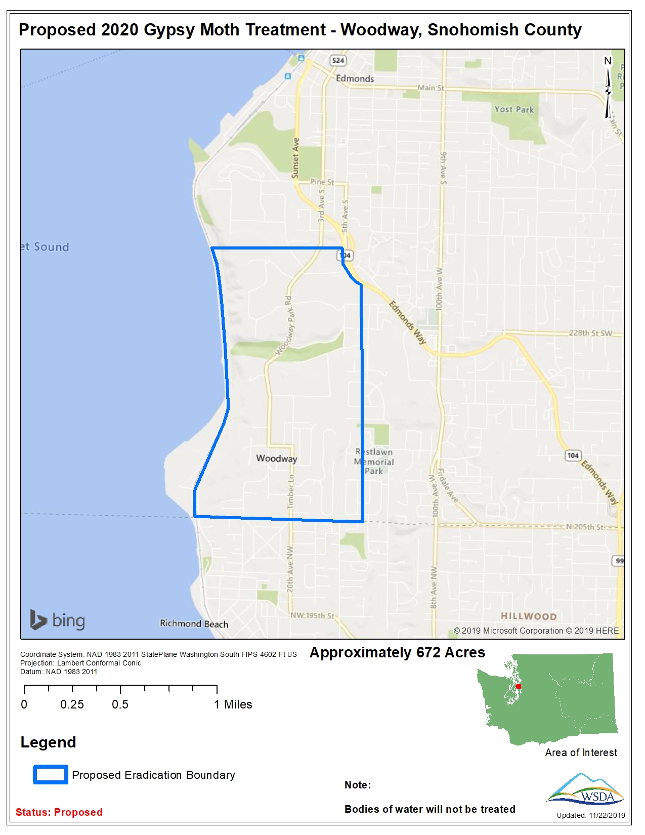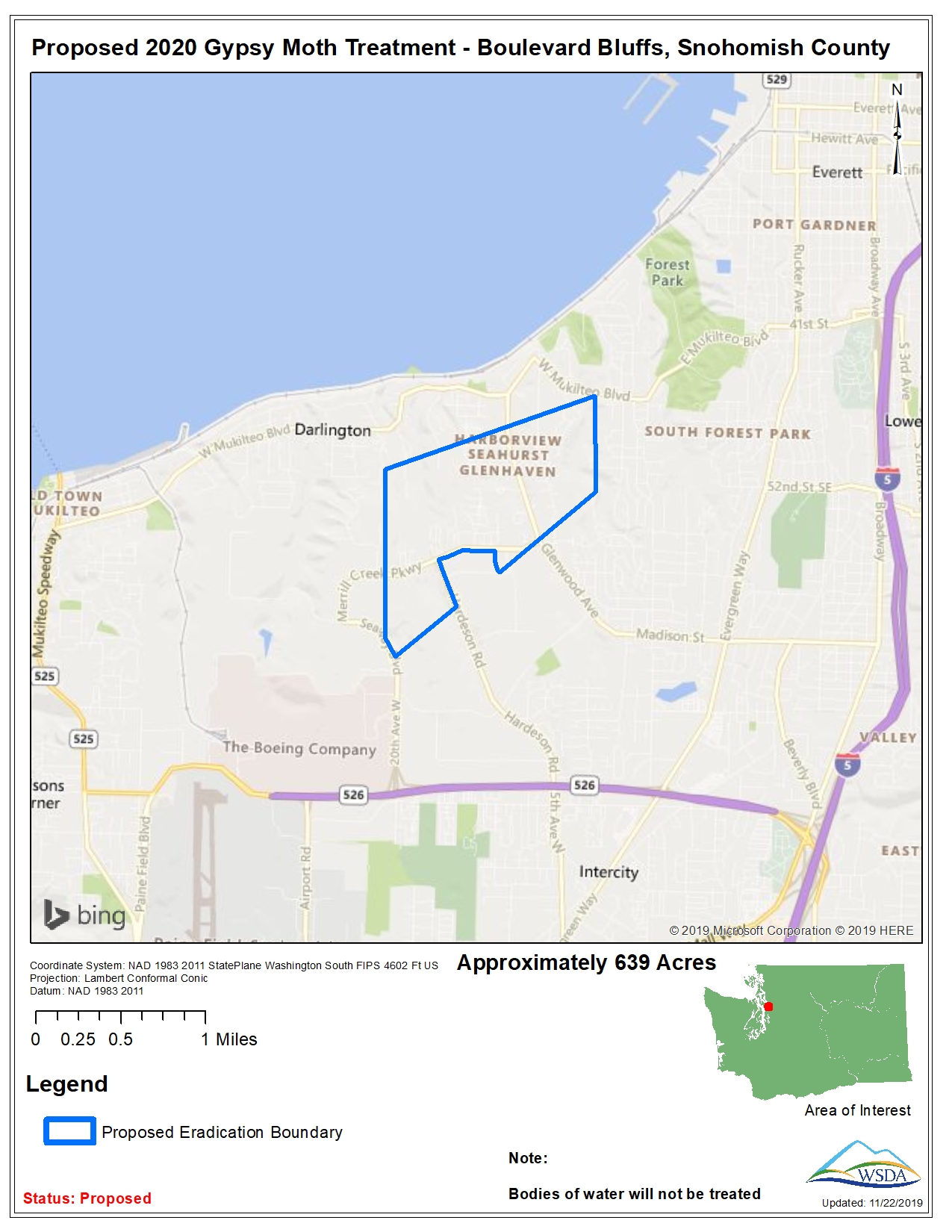 WSDA treated two areas in Snohomish County totally about 1,300 acres in May of 2020 to eradicate introductions of spongy moth, a non-native, invasive pest that can decimate the environment. One site included the first-ever detection of the Hokkaido spongy moth in the United States – a type of Asian spongy moth that predominately feeds on larch trees in its native environment.