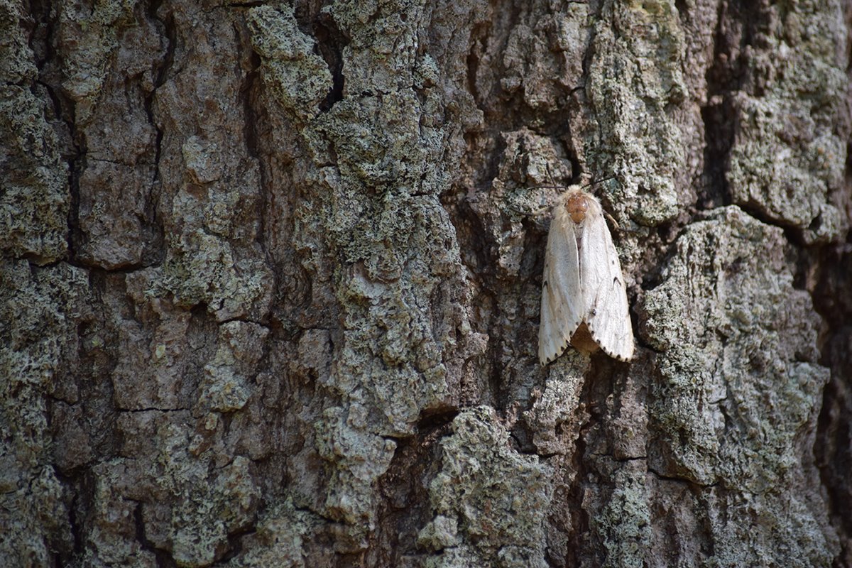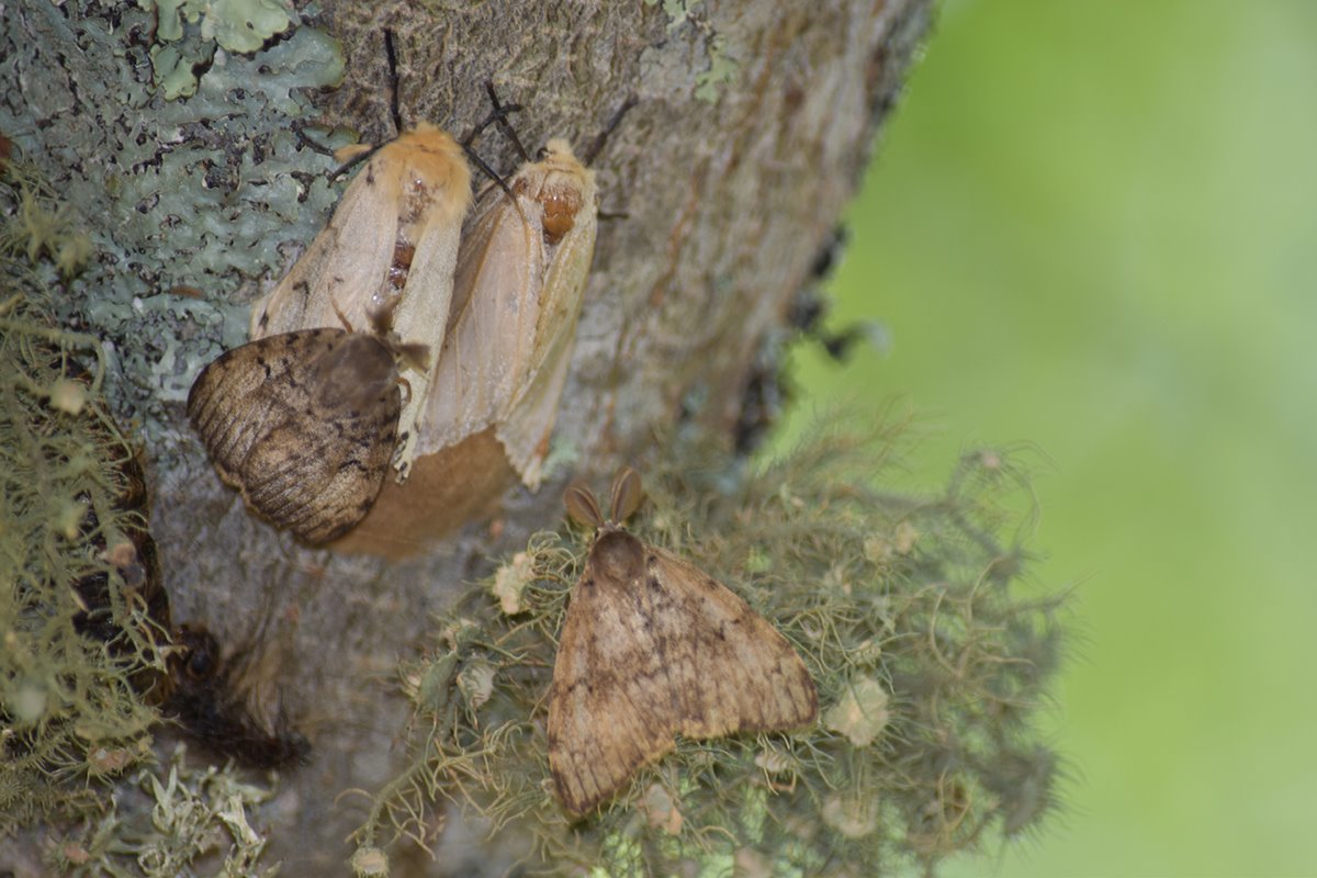 Female moths are larger than the male moth and are a cream color with dark brown wavy lines and a distinct “dot and comma” marking on each wing. Most female spongy moths detected in Washington cannot fly. They can lay up to 1,000 eggs, which means that spongy moth populations can explode rapidly if they are allowed to establish in an area.