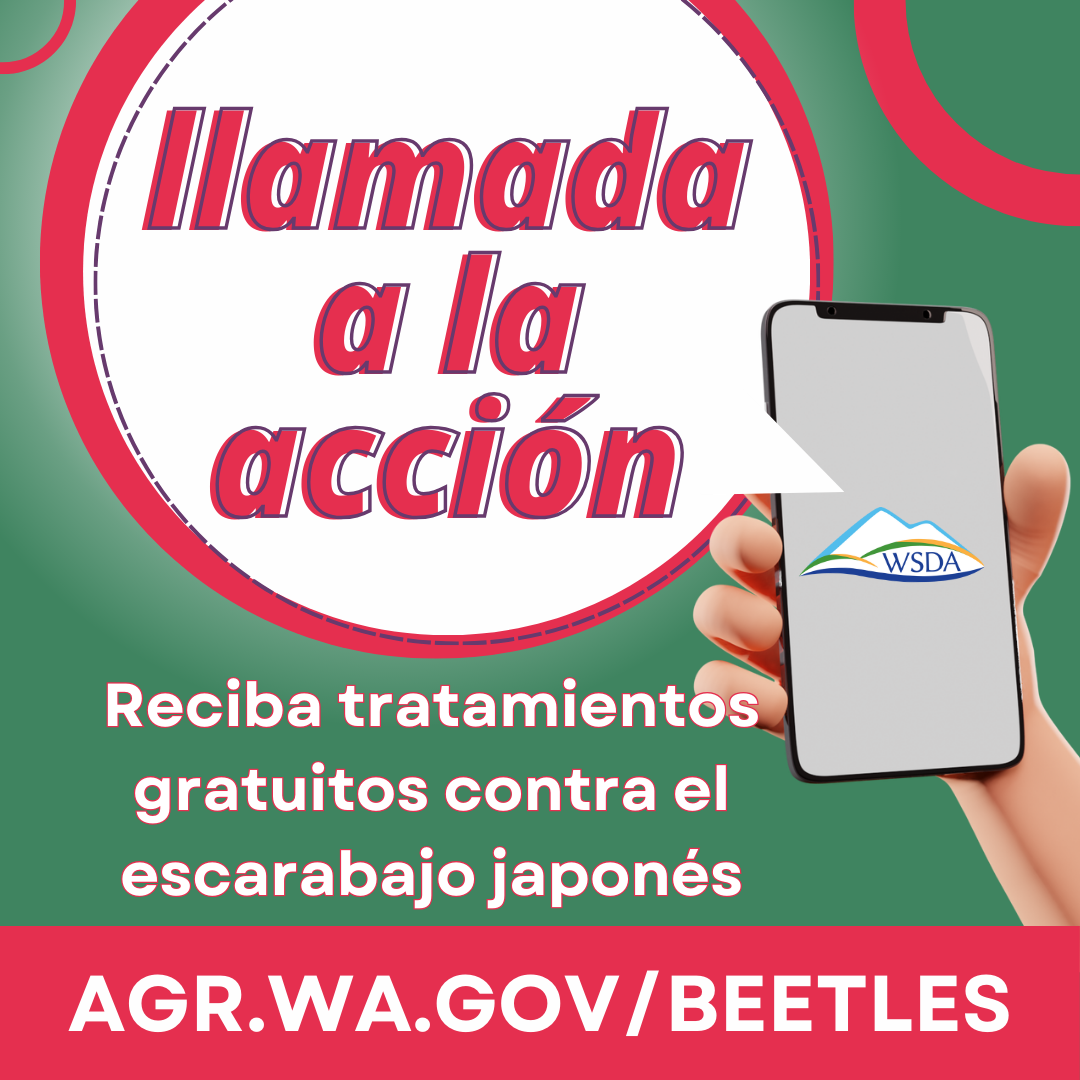 - Si vives en un área de tratamiento de escarabajos japoneses, ¡responde a la llamada! Regístrese para que su jardín sea tratado GRATIS contra los escarabajos japoneses. Más información en agr.wa.gov/beetles