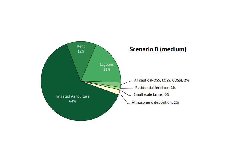In 2018, WSDA conducted a Nitrate Availability Assessment study to provide a scientific baseline estimate of the amount of nitrogen potentially available for loss to groundwater from different sources within the LYV’s Ground Water Management Area (GWMA). The study found that agriculture plays the lead role in reducing nitrate contamination. Of the total, 64% was estimated to be associated with irrigated agricultural crop production including crops tree fruit, animal forage, and others. 31% was estimated to be associated with animal feeding operations, and the remaining 5% by residential, commercial, industrial land municipal sources. Efficient nitrogen management is essential for ensuring sustainable agriculture while protecting the environment and agriculture is key to the effort.