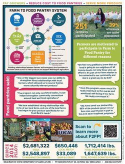 Farm to Food Pantry (F2FP) is a partnership between WSDA Food Assistance and Harvest Against Hunger (HAH), founded in 2014. The initiative helps strengthen community-based food systems by supporting local farmers, hunger relief organizations, and their clients. The primary goal of F2FP is to support local, small-scale farmers while increasing access to nutrient-dense and nourishing foods for Washingtonians facing food insecurity.